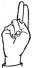 На ћирилици написано МИХАЈЛО НЕСТОРОВ састоји се из 15 слова [?]. Исписано ћириличном једноручном азбуком за глувонеме: